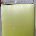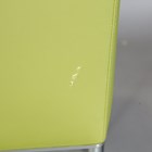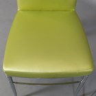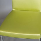A pair of modern chromium plated metal and Baccarat glass mounted side chairs, designed by Philippe Starck, upholstered in lime green leather, height 90cm, width 41cm, depth 50cm.