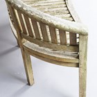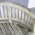 A 20th century wooden slatted teak 'banana' garden bench, height 85cm, width 162cm.