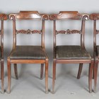 A set of six Regency mahogany bar back dining chairs, comprising two carvers, height 89cm, width 52cm, and four standards, height 89cm, width 47cm.