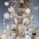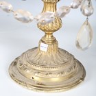 A pair of late 19th/early 20th century gilt brass and cut glass six-light candelabra, the cascading scroll mounts hung with swags and drops, raised on circular stepped bases, height 74cm.