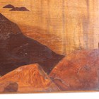 An early 20th century marquetry panel depicting 'Loch Coruisk', in the manner of the Rowley Gallery, label to reverse, 38.5cm x 61.5cm.