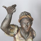 A pair of early 20th century cast composition blackamoor figures, each modelled as a standing female with raised arm, height 113cm (some faults and repairs).