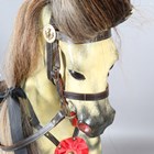 A late 20th century rocking horse by John Cobley, the dappled body with leather saddle and horse hair mane, raised on an oak trestle base, height 117cm, length 132cm.