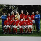 AUTOGRAPHS. A replica England 1966 away shirt signed in ink by members of the World Cup Winning team, comprising: Gordon Banks, Martin Peters, Geoff Hurst, Jack Charlton, George Cohen, Roger Hunt, Alan Ball, Ray Wilson and Nobby Stiles, together with a colour photograph also signed by members of the team, as well as authenticatedautographs.com certificates and photos from when the signatures were obtained.