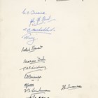 AUTOGRAPHS. A collection of 52 signatures on eight leaves, including the autographs of Ian Fleming and Reginald Tate, together with another leaf signed by Jayne Mansfield with an associated photograph.