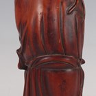 A Chinese carved boxwood figure of Shoulao, late Qing dynasty, modelled standing wearing a long robe and holding a ruyi sceptre and gnarled wood staff, height 19cm (minor chips and staff reglued).