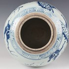 A pair of Chinese blue and white porcelain jars and covers, 20th century, of stout ovoid form, painted with dragons and vapours beneath a keyfret rim, height 30cm.