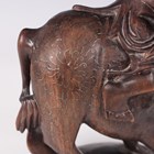 A pair of Chinese carved hardwood figure groups with silver wire inlaid decoration, late Qing dynasty, each modelled as a boy seated on the back of a buffalo, height 21.5cm (one with repaired neck).