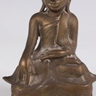 A Chinese Ming style bronze figure of a seated bodhisattva, 20th century, modelled seated holding a ruyi sceptre, height 25cm, together with a Burmese bronze figure of Buddha, height 10.7cm, and two brown patinated bronze figures of Tara, heights 14cm.