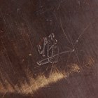A Japanese brown patinated two-piece bronze figure group of a monkey mother and child, Meiji/Taisho period, the mother modelled seated as the child stands at her side, incised character to base of mother, height 20cm, on a later stained wood stand.