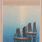 Hiroshi Yoshida (1896-1950) - a Japanese polychrome woodblock print, titled 'Glittering Sea', signature and publisher's seal to lower right corner, signed and titled in pencil to margin, 38.5cm x 26cm, framed and glazed.