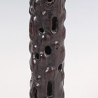 A Chinese zitan wood brushpot, probably late Qing dynasty, of slightly flared form with barbed quatrefoil outline and fluted lip, height 16.1cm, together with a zitan incense holder of cylindrical form with carved and pierced gnarled wood decoration, length 21.6cm.