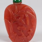 A collection of twelve Chinese snuff bottles, mostly 20th century, including a porcelain bottle, painted with Zhongli Quan, height 5.5cm, and glass, agate and other hardstone examples, heights ranging from 4.5cm to 7.6cm.