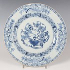 A Chinese famille rose export porcelain plate, Qianlong period, painted with flowers, diameter 22.9cm (minor rim chips), together with a blue and white export porcelain plate, diameter 23.1cm (hairline cracks), and a blue and white export porcelain vase, Qianlong period, painted with flowers in a fenced garden, height 13.6cm (chip and crack to rim).