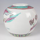 A Chinese blue and white porcelain baluster vase, mark of Kangxi but late 19th century, painted with blossoming prunus branches, underglaze blue four-character mark to base, height 26.5cm, together with a Chinese famille verte crackle glazed baluster jar and cover, early 20th century, painted with warriors, height 26cm, a famille rose ginger jar, painted with warriors, height 11.5cm, and a Chinese famille rose export porcelain tureen lid, Qianlong period, painted with figural and landscape panels, length 30cm.