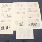 A group of Chinese paintings, 20th century, including flower studies in silk albums and four hanging scrolls.
