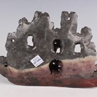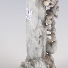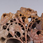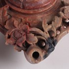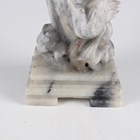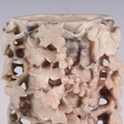 A collection of eighteen Chinese soapstone carvings, early 20th century, including a figure of Guanyin, spill vases and two teapots with bird finials, lengths 16cm and 19cm (some faults).