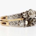 A gold and diamond ring in a twin shank design, mounted with old cut diamonds, unmarked, weight 4g, ring size approx H1/2 (one diamond lacking).