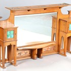 An Edwardian Arts and Crafts oak overmantel mirror, in the manner of Shapland & Petter, the bevelled glass above two inset copper panels decorated in relief with mushrooms, height 90cm, width 151cm, depth 24cm (formerly the top of a dresser).