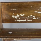 A graduated pair of early 20th century gilt painted wooden book troughs, raised on pierced supports, height 74cm, width 91cm and 76cm, depth 24cm.