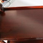 A mid-Victorian mahogany two-tier buffet with reeded finials and arched panel doors, height 110cm, width 88cm, depth 34cm.