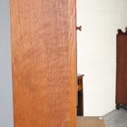 An early 20th century oak side cabinet by Heals, the two panelled doors above an open shelf, two drawers and further doors, one drawer with inset ivorine maker's plaque, height 197cm, width 107cm, depth 45.5cm.