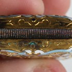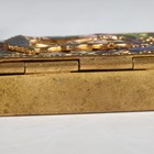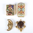 An early 20th century gilt metal and enamelled vesta case, length 6.4cm, together with another enamelled vesta case, a gilt metal and tortoiseshell-effect vesta case in the form of a turtle and another in the form of a moon.