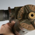 A Second World War period brass tank periscope with green painted body and adjustable eyepiece, detailed to the top 'Periscope No. 14 TPL Mk 4 O.S. 667 M.A H.G.P. 1945 Regd. No. 10698', height 42cm.