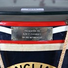 A mid-20th century military side drum, painted with the badge of the 3rd Royal Anglian Regiment and later sympathetically converted to a coffee table and applied with a plaque engraved 'Presented to B/M F. Cockcroft on his retirement', diameter of glass top 56cm. Provenance: Bandmaster (WO1) Frank Cockcroft began his service in 1946 when he enlisted with the Royal Armoured Corps, then transferred to the Royal Anglian Regiment. There he began as a band boy and worked to eventually become Bandmaster. In 1964 he conducted the Berlin Philharmonic Orchestra. Frank retired in 1968 and subsequently died in 2002.