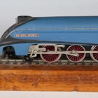 A Tri-ang Wrenn gauge OO W2212 locomotive 'Sir Nigel Gresley' and tender, boxed, together with a tracked plinth display base (box scuffed and stained).