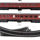 A Hornby gauge OO R.1067 Harry Potter and the Goblet of Fire Hogwarts Express train set, boxed, all items still tissue-wrapped, together with an R.4219A Hogwarts Express composite coach, an R.8204 Platform 9¾, a Corgi The Knight Bus and a Mr Weasley's Ford Anglia, all boxed.
