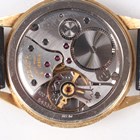 A Zenith 18K gold circular cased gentleman's wristwatch, circa 1962, the signed and jewelled 120 T caliber movement numbered '5433690', the signed silvered dial with gilt Arabic numeral and baton hour markers, the signed case back interior detailed '18K 0.750', the case back presentation inscribed and numbered '926550', case diameter 3.5cm, on a black leather strap, with Zenith blue case.
