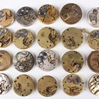 A collection of thirty-three pocket watch movements and dials, some signed, including 'J.W Benson', 'Elgin', Hampden Watch Co' and 'Penlington Liverpool'.