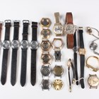 A collection of assorted wristwatch cases and movements, including a Sicura steel backed wristwatch, together with other watch parts, including dials.