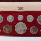 An Elizabeth II Royal Mint ten-coin specimen set 1953, within original red presentation box.