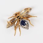 A gold, white metal, sapphire and diamond brooch, designed as a winged insect, collet set with the two principal oval cut sapphires to the body, otherwise mounted with circular cut diamonds and sapphire set eyes, unmarked, weight 5.1g, width 2.9cm.