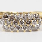 An 18ct gold and diamond ring in a three row design, Birmingham 1988, weight 2.7g, ring size approx P (one diamond lacking), a gold ring, mounted with a circular cut diamond between foliate shoulders, indistinct marks, weight 2.2g, a gold, ruby and diamond three stone ring, marks rubbed, weight 2.3g (in two sections), two 9ct gold and gem set rings and a gold and mauve paste set ring, detailed ‘9ct’, total weight 5.7g.