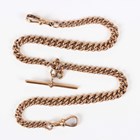 A 9ct gold graduated curblink Albert watch chain, Birmingham 1915, fitted with two 9ct gold swivels and a 9ct gold T-bar, weight 41.1g, length 38.3cm.