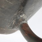 An early 19th century French coppered tin watering can with large rose, height 42cm.