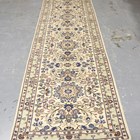 A Kashan runner, Central Persia, late 20th century, the ivory field with a column of four medallions, supported by floral sprays, within a complimentary border, 396cm x 107cm.