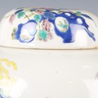A pair of Chinese famille rose porcelain ginger jars and covers, mark of Kangxi but late 19th century, of ovoid form, each painted with a bird perched on fruiting branches, flowers and rocks, underglaze blue six-character mark within double ring to bases, height 21.5cm (one cover restored).