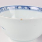 A Chinese blue and white export porcelain ovoid jar, Kangxi period, painted with a maiden and three boys, height 8.5cm (minor rim chips), together with a Chinese Nanking cargo blue and white export porcelain teabowl and saucer, Qianlong period, each piece painted with pine tree pattern, saucer diameter 12.1cm, and a blue and white porcelain bird feeder of bottle vase form, painted with three bird roundels, height 5.2cm. Note: property of a West Sussex private collector.