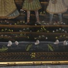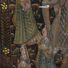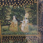 Two Indian paintings on fabric, 20th century, one painted with scenes of Krishna, 118.5cm x 81cm, the other depicting a procession with maharajah or prince atop an elephant, 108cm x 81cm, both gilt framed and glazed.