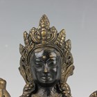 A Chinese dark brown and gilt patinated bronze figure of Tara, 20th century, modelled seated in dhyanasana wearing a headdress and beaded jewellery, on a lotus moulded base, height 21cm.