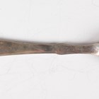 An early 20th century Georg Jensen sterling serving spoon, designed by Georg Jensen, pattern No. 5, the tapering handle cast with a stylized flower inset with a coral cabochon, weight 35.9g, length 17cm.