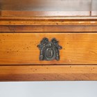 A modern reproduction cherry writing table with sliding leather-inset writing surface, height 119cm, width 110cm, depth 50cm.