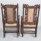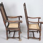 Two Charles II walnut framed elbow chairs with caned seat and back panels, height 120cm, width 60cm (alterations).