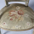 A pair of 19th century French Louis XVI style green painted and gilt showframe fauteuil armchairs with period tapestry seats and backs, height 97cm, width 60cm.