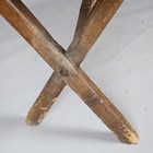 A 19th century pine kitchen table with an 'X' frame trestle base, height 76cm, length 208cm, depth 71cm.
