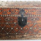 A 20th century brown leather and brass studded dome-topped trunk, height 47cm, width 90cm, depth 43cm.